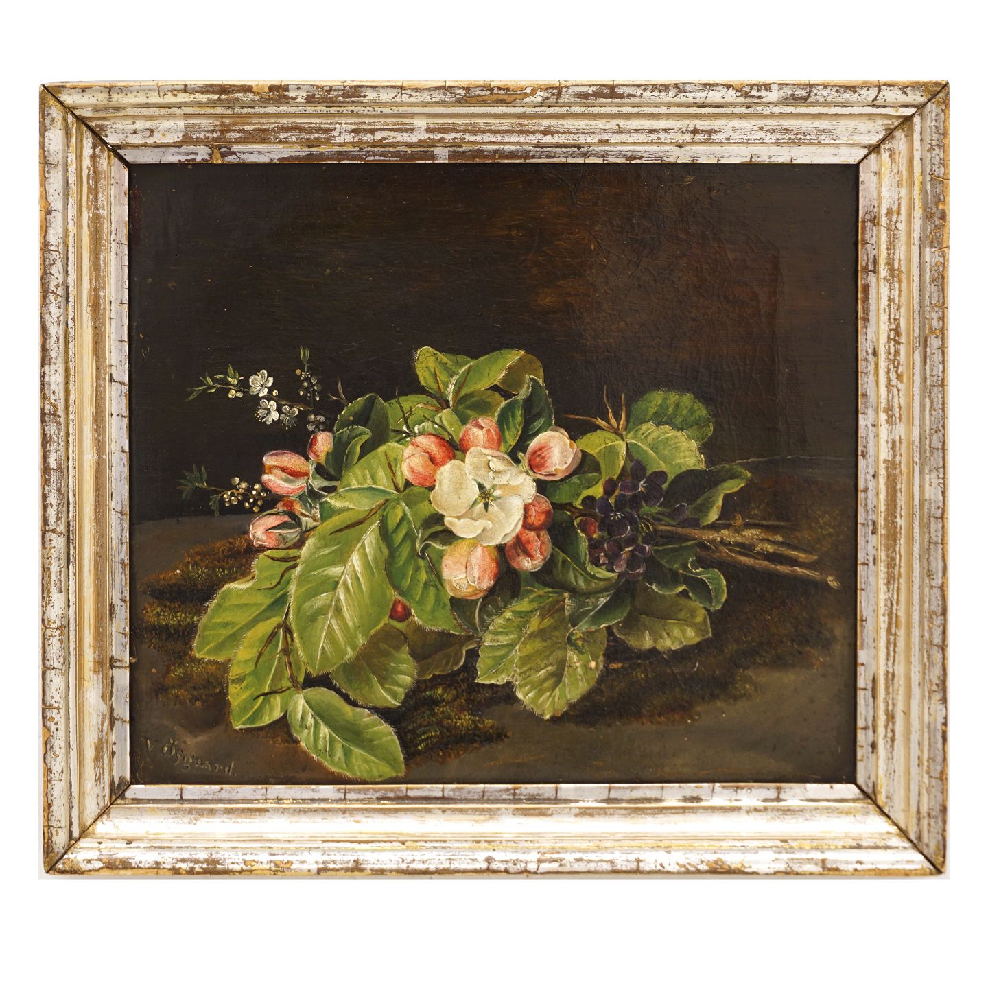 Stilleben med blomster. Olie på lærred. Signeret "V. Öygaard" og betegnet "Vald. Öygaard" på bagside. 2. halvdel af 1800-tallet