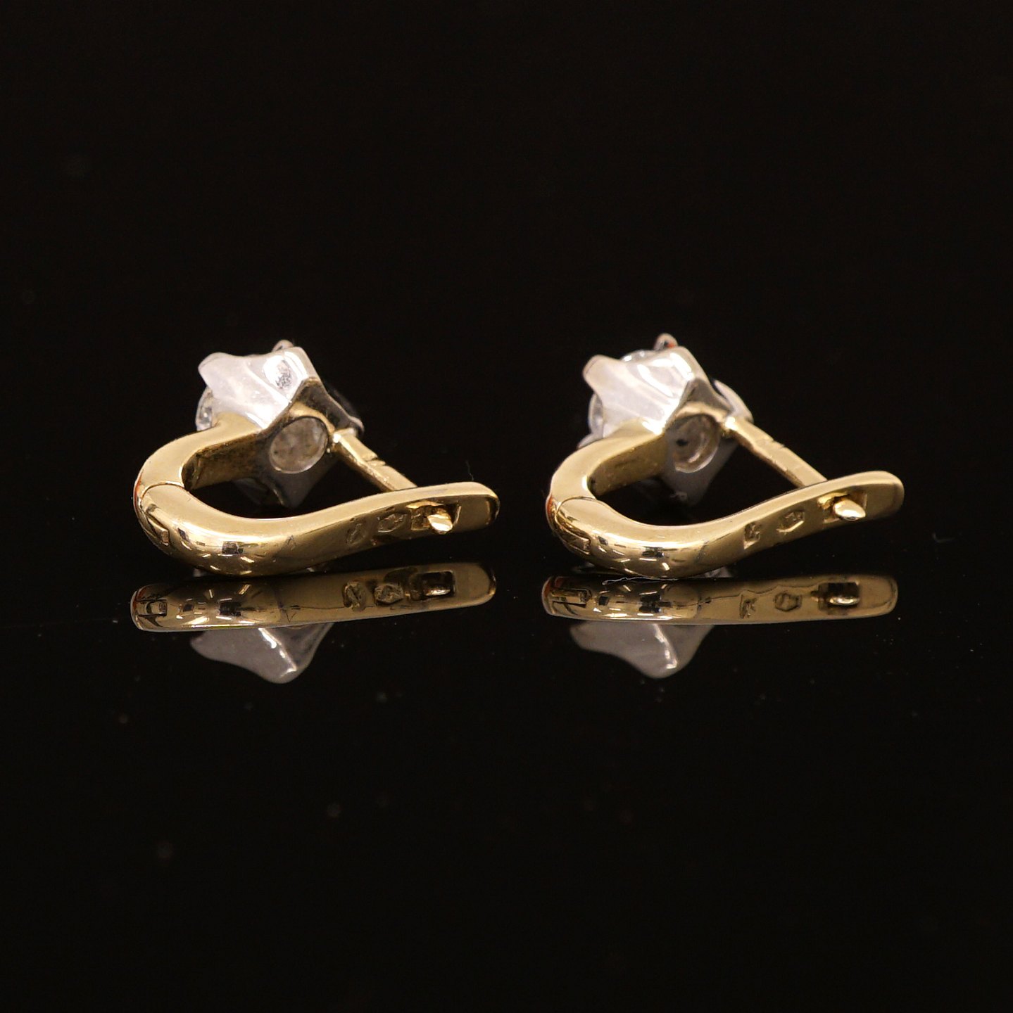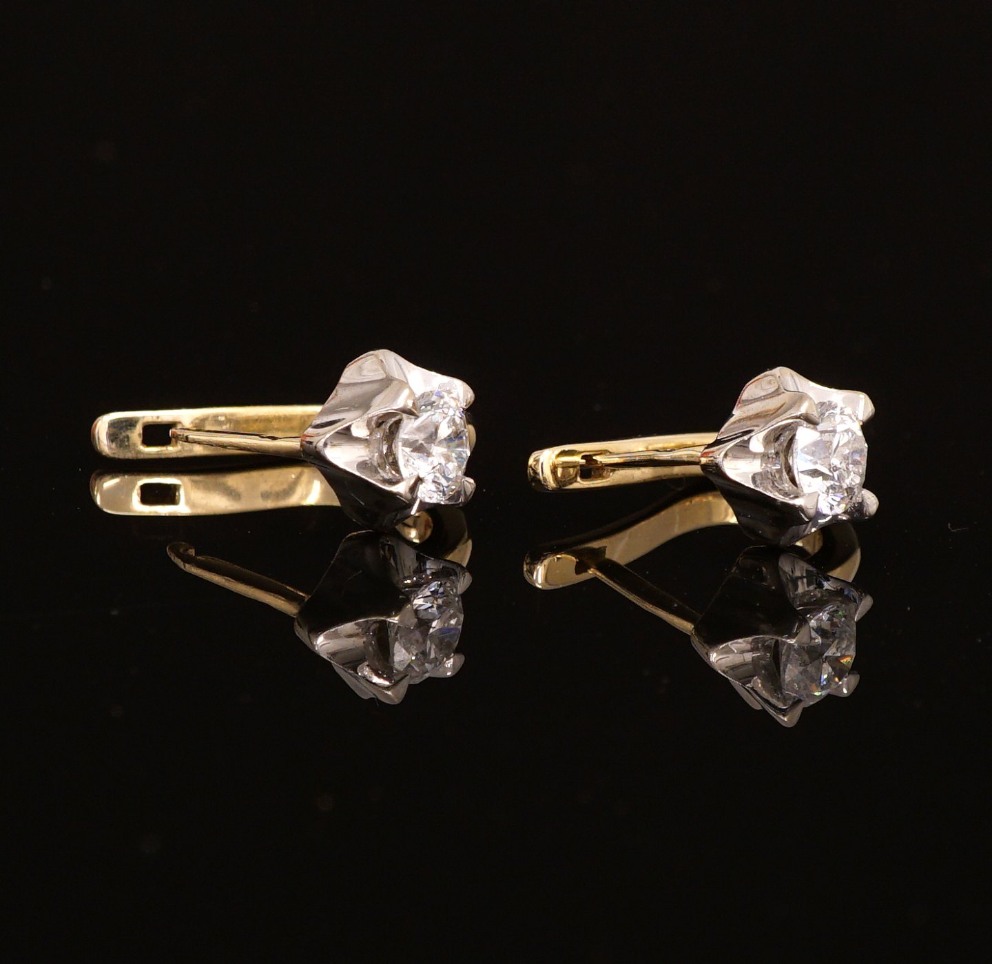 A pair of earrings, 14kt Gold, each with a brillant cut diamonds of circa 0,5ct