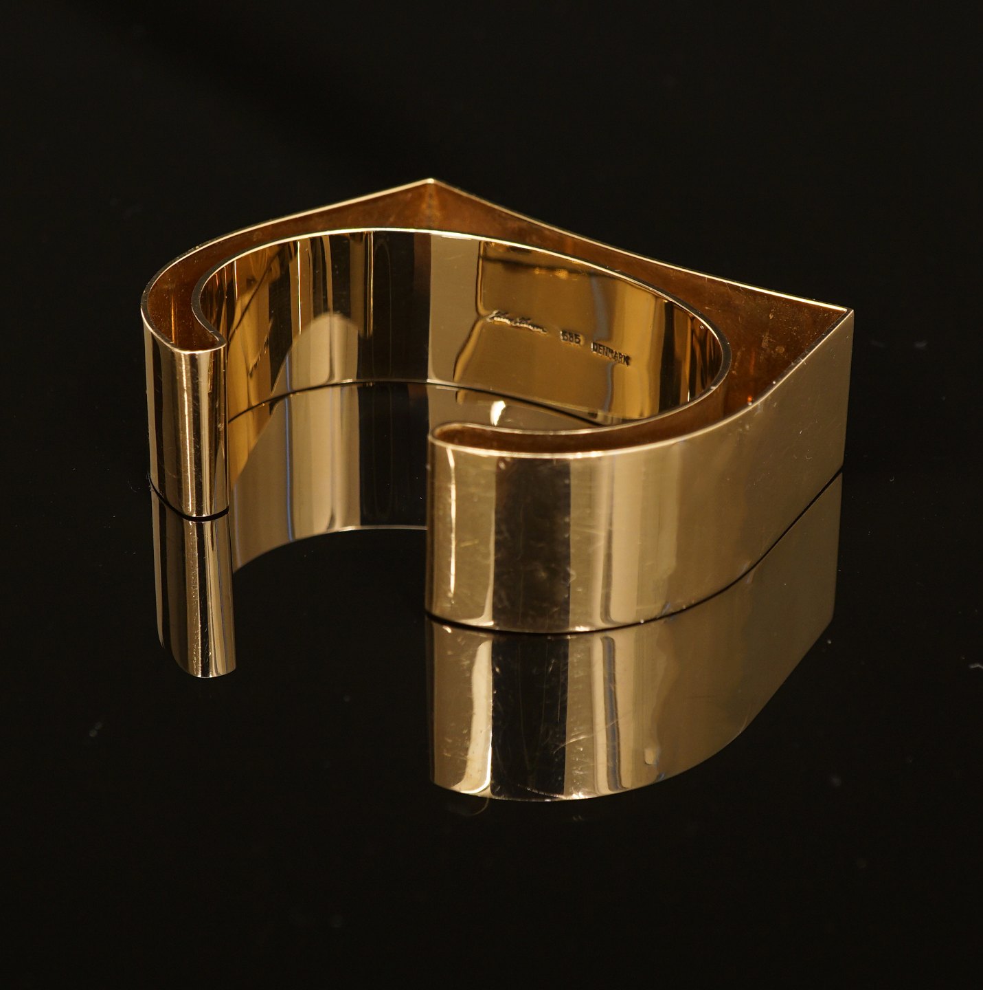 Hans Hansen: Kraftigt armsmykke i 14kt guld. Signeret. Mål: 12,9x5,5cm. V: 70gr