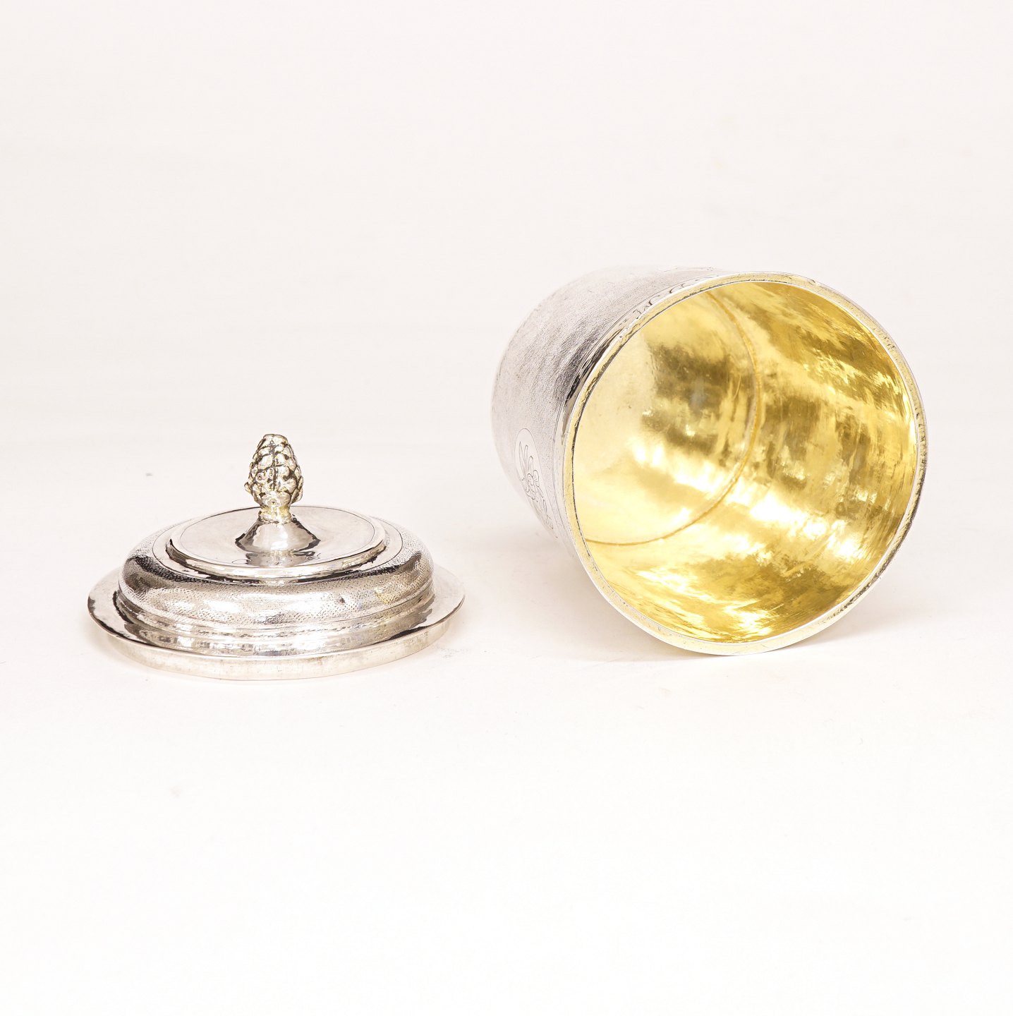 A Norwegian Baroque Silver beaker, partly gild. Made by Mouritz Arnholtz/Arenholdt, Larvik, Norway, Before 1688-Before 1715. H: 11,1cm. W: 184gr