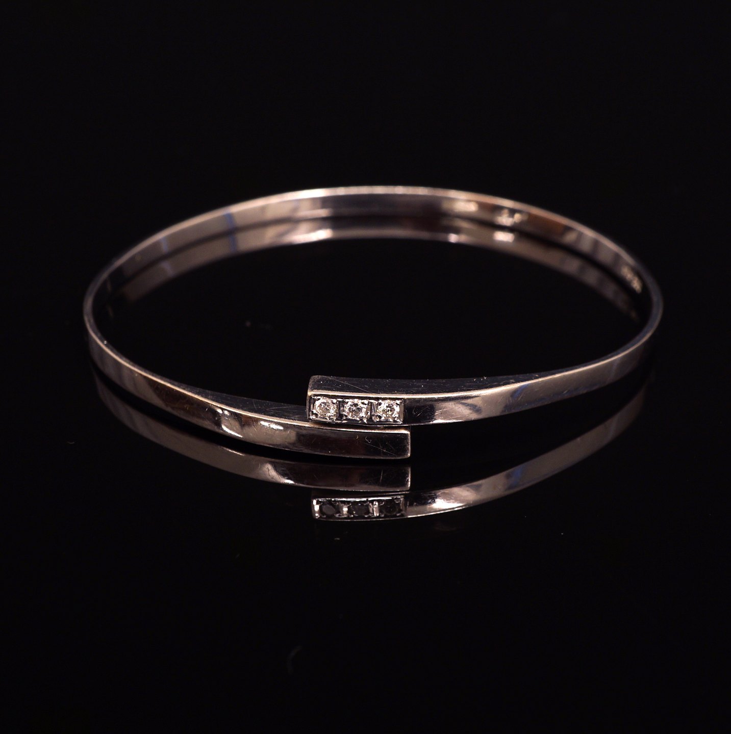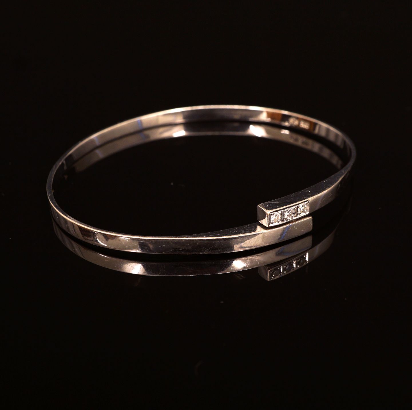 Sixtus Thomsen, Aalborg: Armring i 14kt hvidguld prydet med tre diamanter. Mål: 6,1x5,5cm. V: 10gr