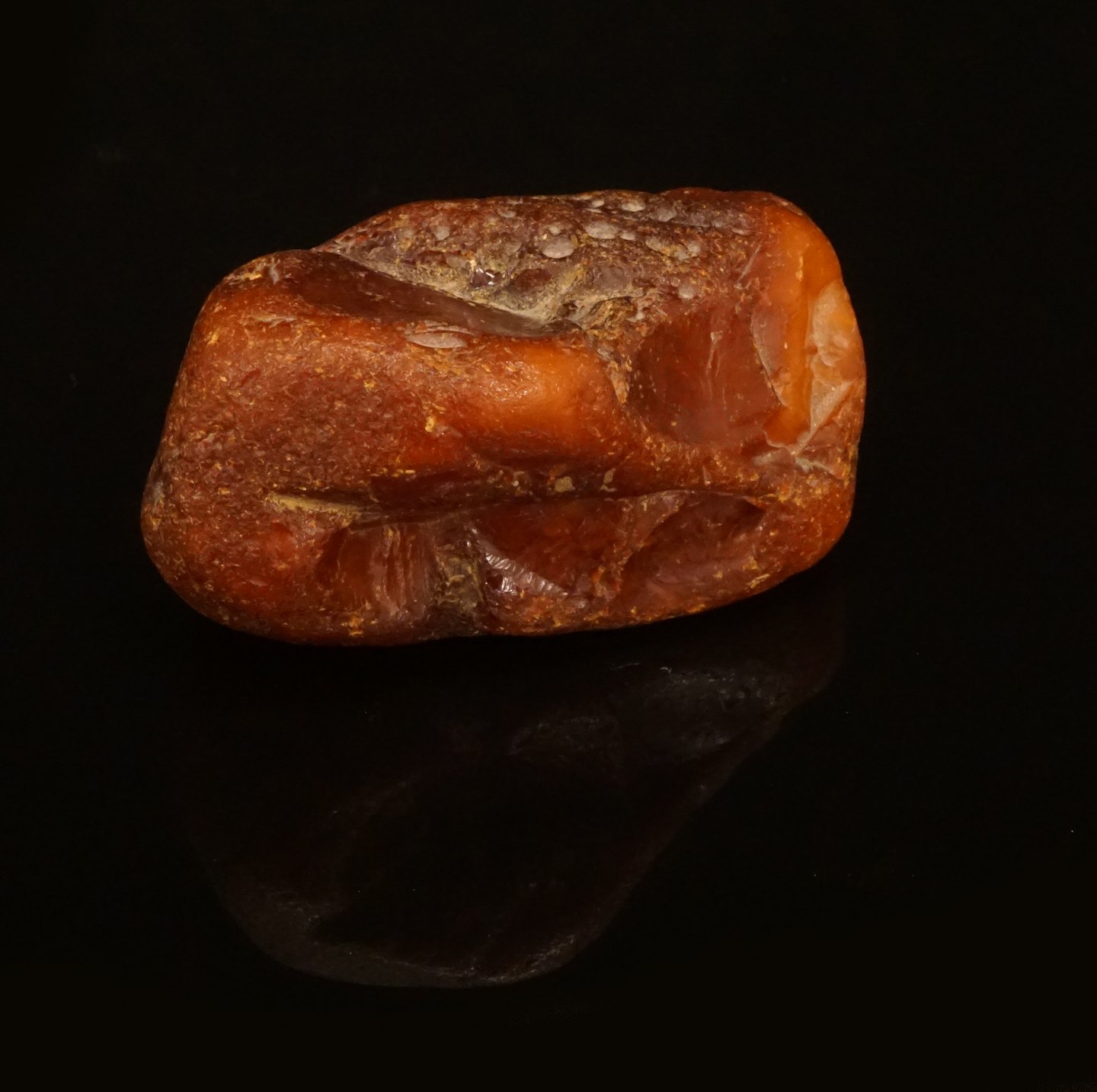 Upoleret ravklump fundet på Fanø. L: 7,8cm. V: 85gr