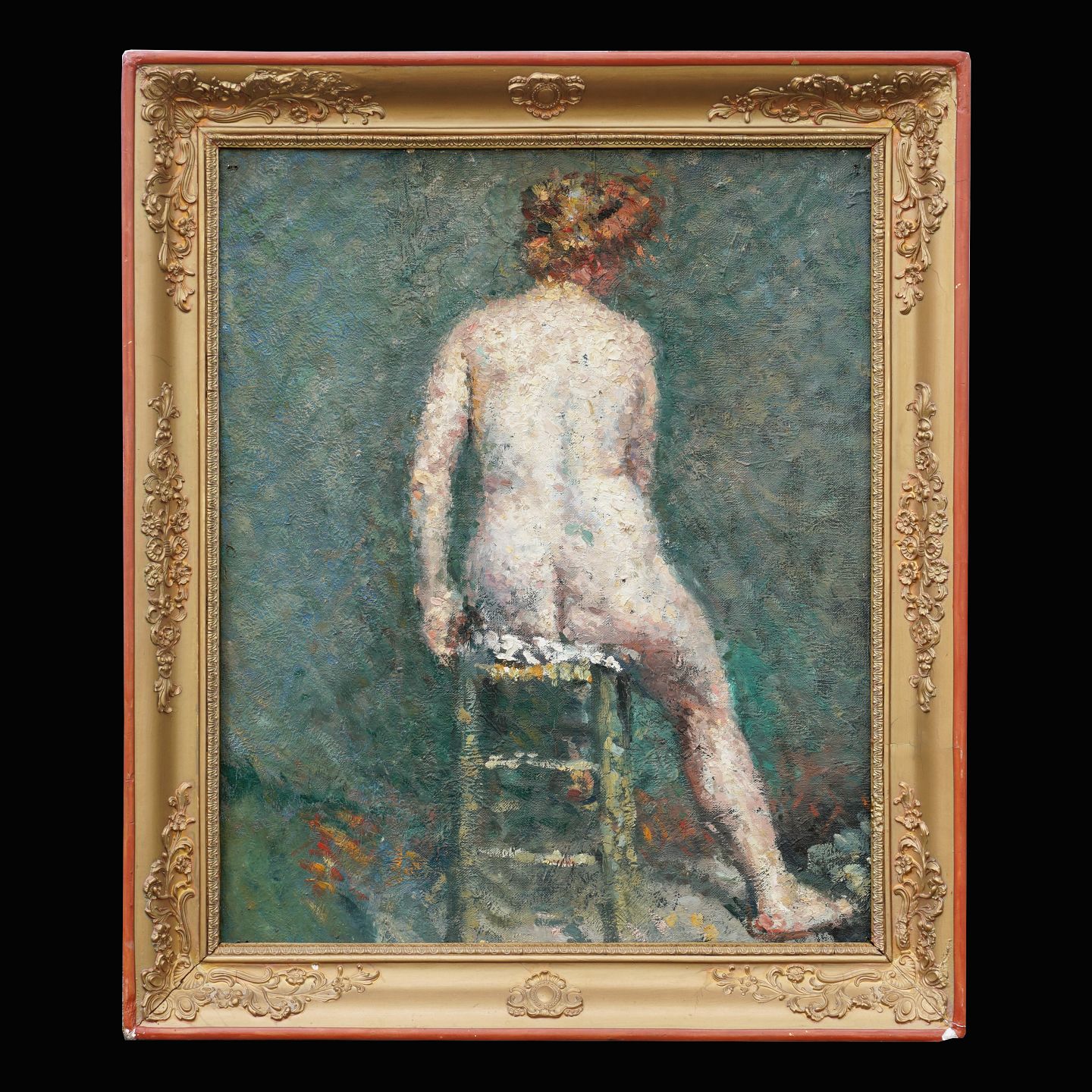 Unbekannter französischer Impressionist: Frauenakt. Öl auf Leinen. Lichtmasse: 60x49cm. Mit Rahmen: 76x62cm