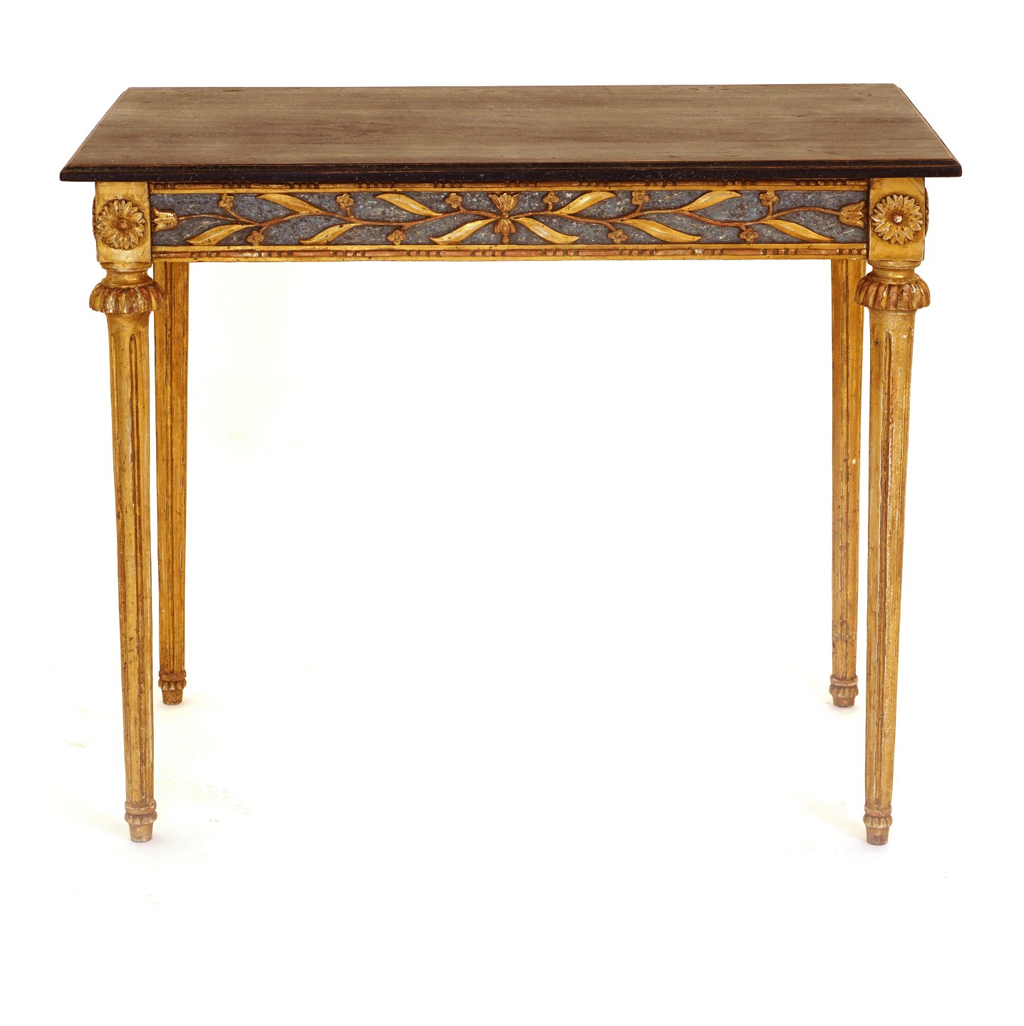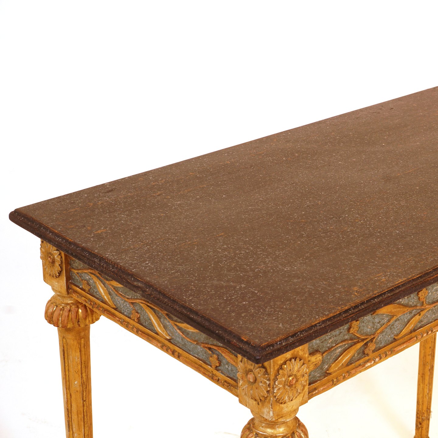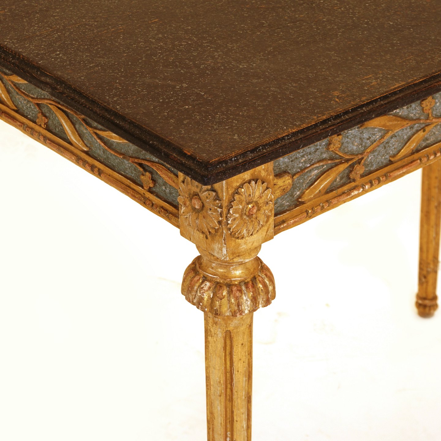 Vergoldete Louis XVI Konsole mit schwarzer Holzplatte