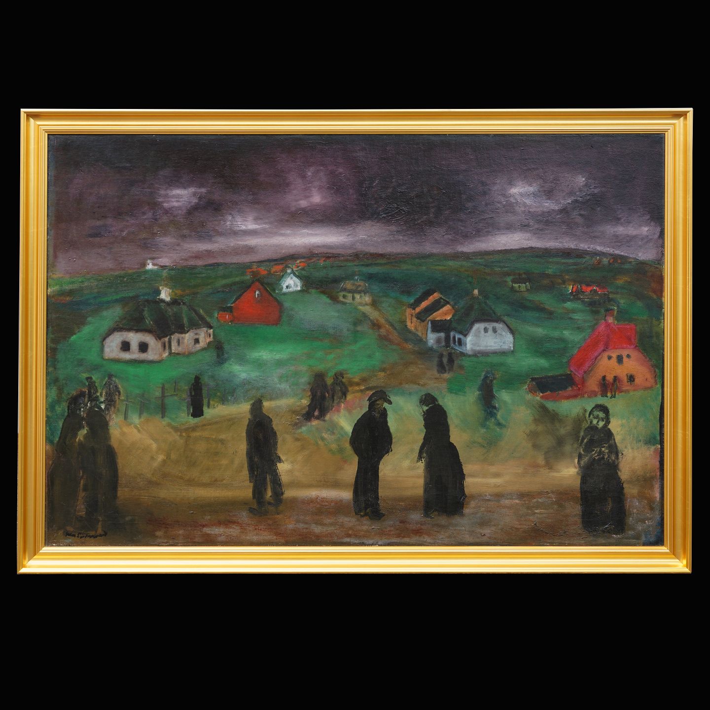 Jens Søndergaard, 1895-1957, "Menschen am Meer". Signiert und datiert 1928. Lichmasse: 81x120cm. Mit Rahmen: 91x130cm