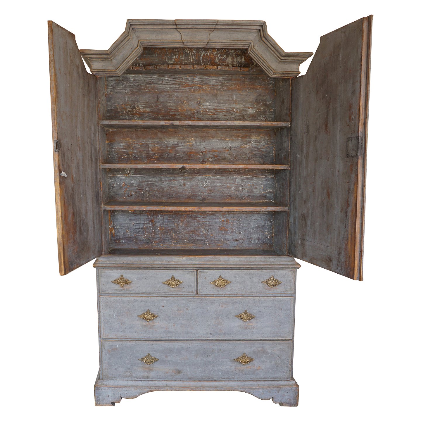 Underskab med skuffer. Overskab med to døre, hvor bag hylder