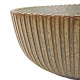 Arne Bang skål. Arne Bang skål i stentøj med grønblå spættet glasur og riflet korpus. Model nr. 122. H: 10,4cm. D: 22,5cm
