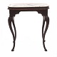 Østerbro fajancebord. Bakkebordsblad dekoreret på højkant i blå farver med motiv i form af rokokosceneri med boldspillende par med hund indrammet af rokoko kartouche, hvori bl.a. fugle og abe. På sortdekoreret rokoko understel. København 1764-69. H: 74cm