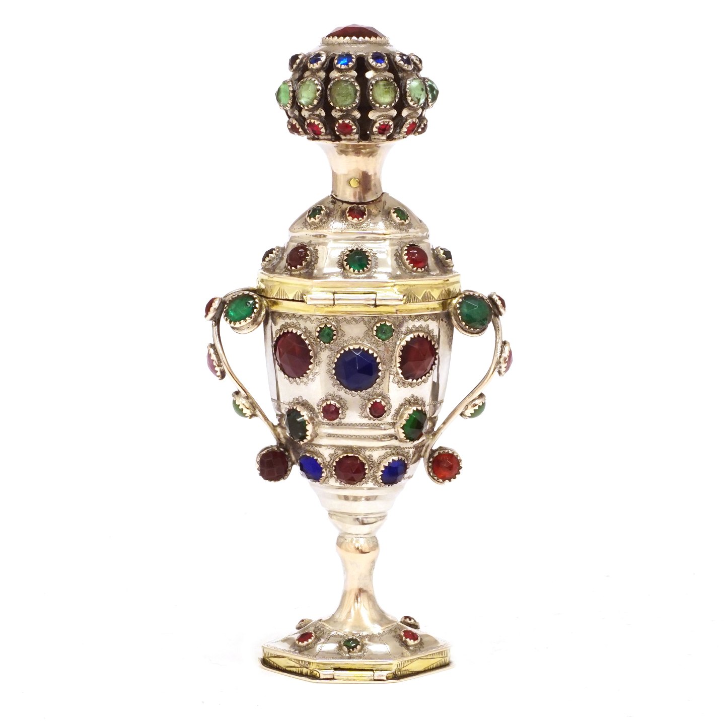 Hovedvandsæg i delvist forgyldt sølv prydet med 91 flusser