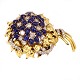 Italiensk safir- og diamantbroche af 18kt guld prydet med brillantslebne diamanter på i alt ca. 7,75ct og cabochonslebne safirer på i alt ca. 27,7ct
