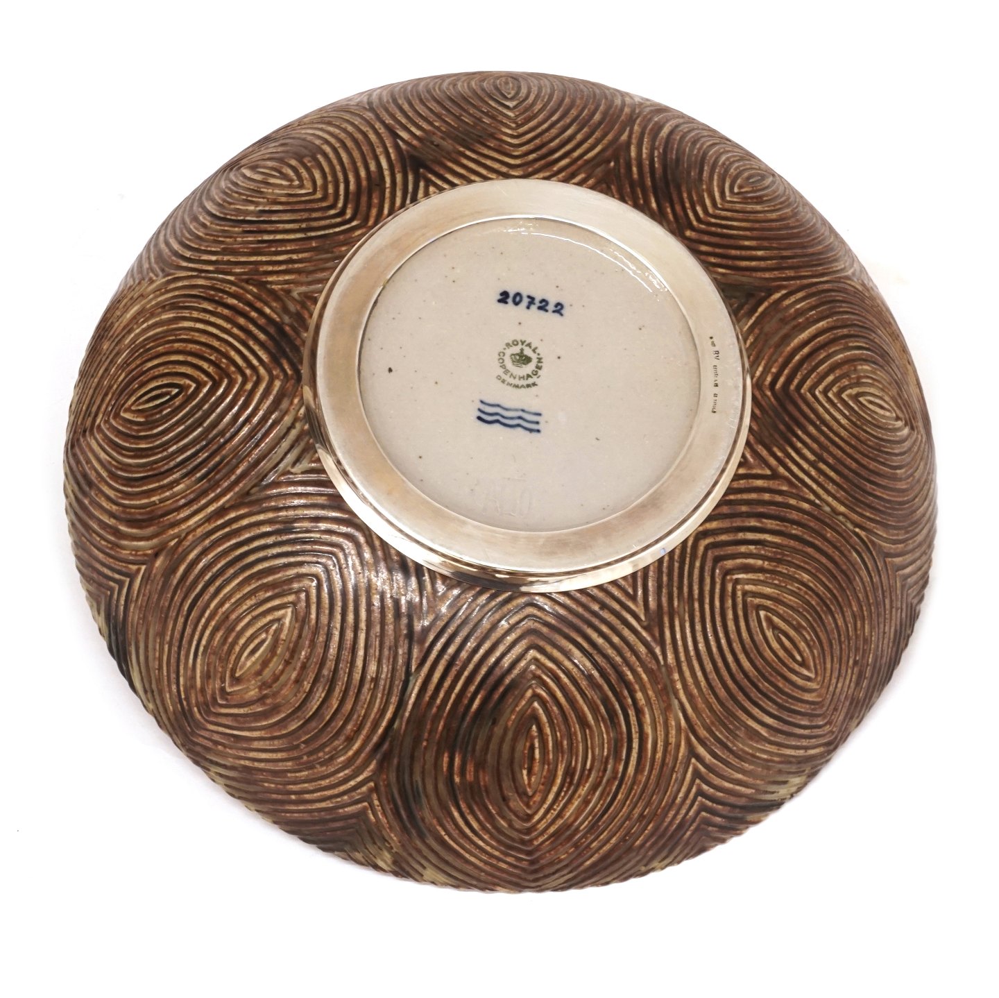 Silver mounted Axel Salto bowl 20722 for Royal Copenhagen. H: 7,7cm. D: 29,4cm