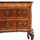 Nøddetræsfineret kommode med delvise forgyldninger og rødlig marmorplade. Altona ca. år 1760-70. H:76cm. Plade: 80x43cm