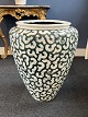 Stor Per Weiss stentøjskrukke med geometrisk mønster og grøn glasur med blå stafferinger. H: 59cm. D: 48cm