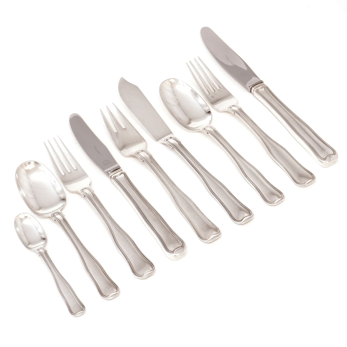Harald Nielsen 1947 for Georg Jensen sterlingsilver cutlery Old Danish for 12 persons + fish cutlery for six persons + 10 serving peices