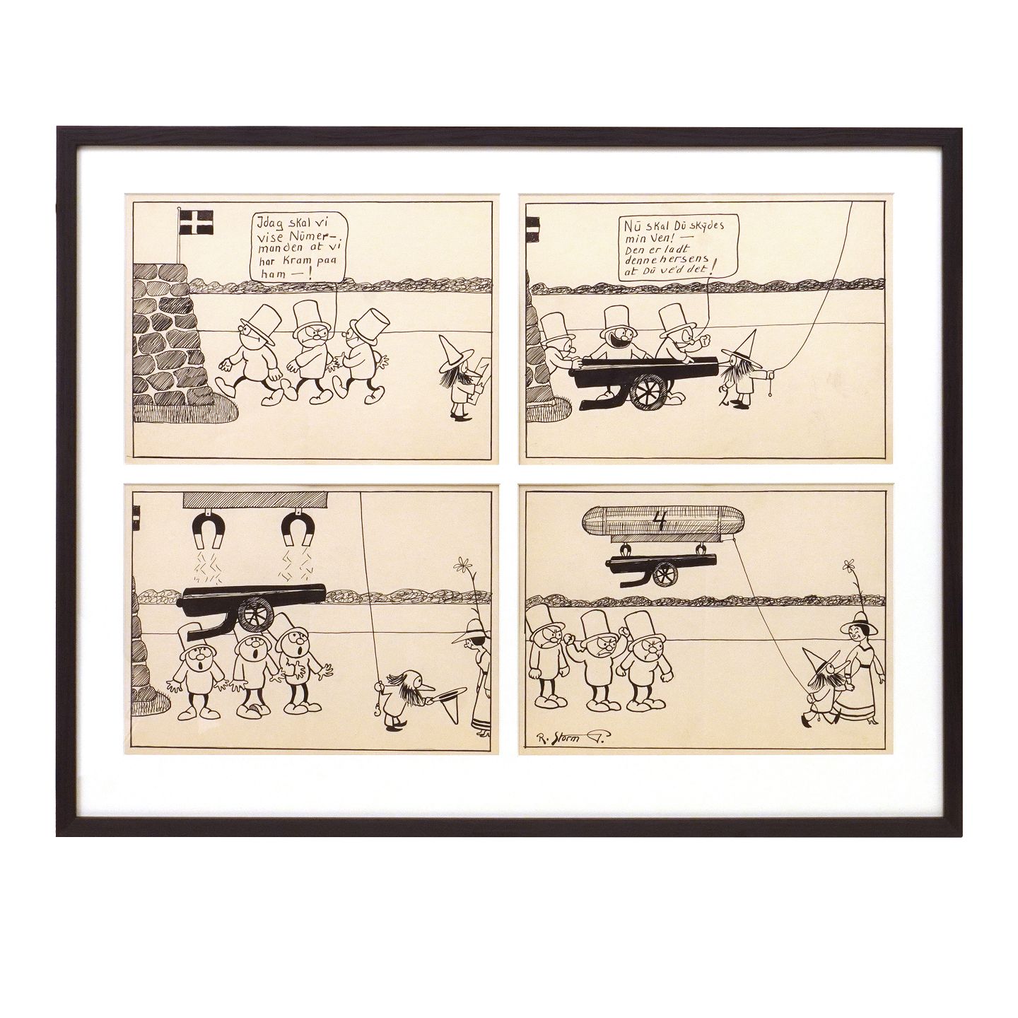 Robert Storm Petersen, 1882-1949. Four original drawings, ink & pencil, 1913-16. Size with frame: 52x65cm