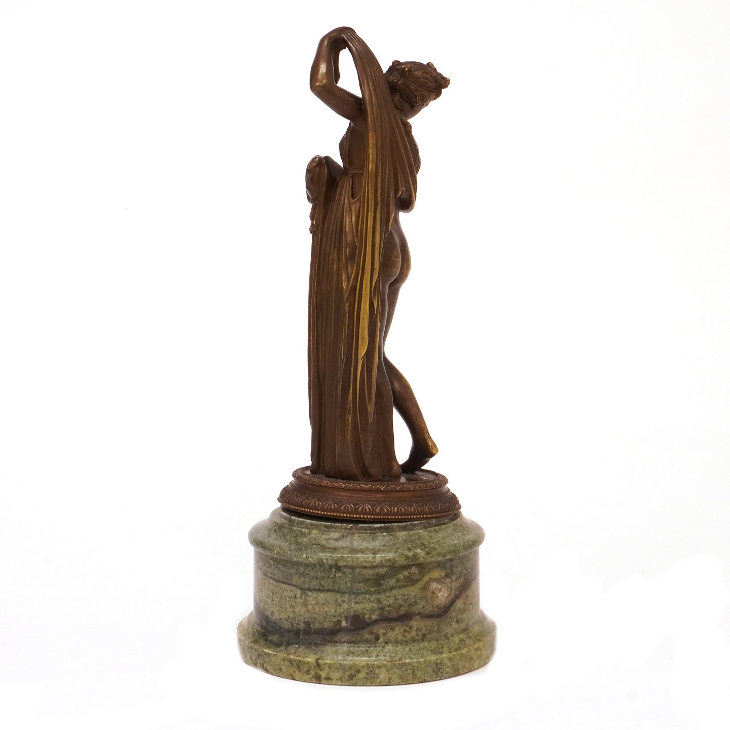 Grand Tour souvenir i form af bronze skulptur forestillende Venus på grøn marmorsokkel