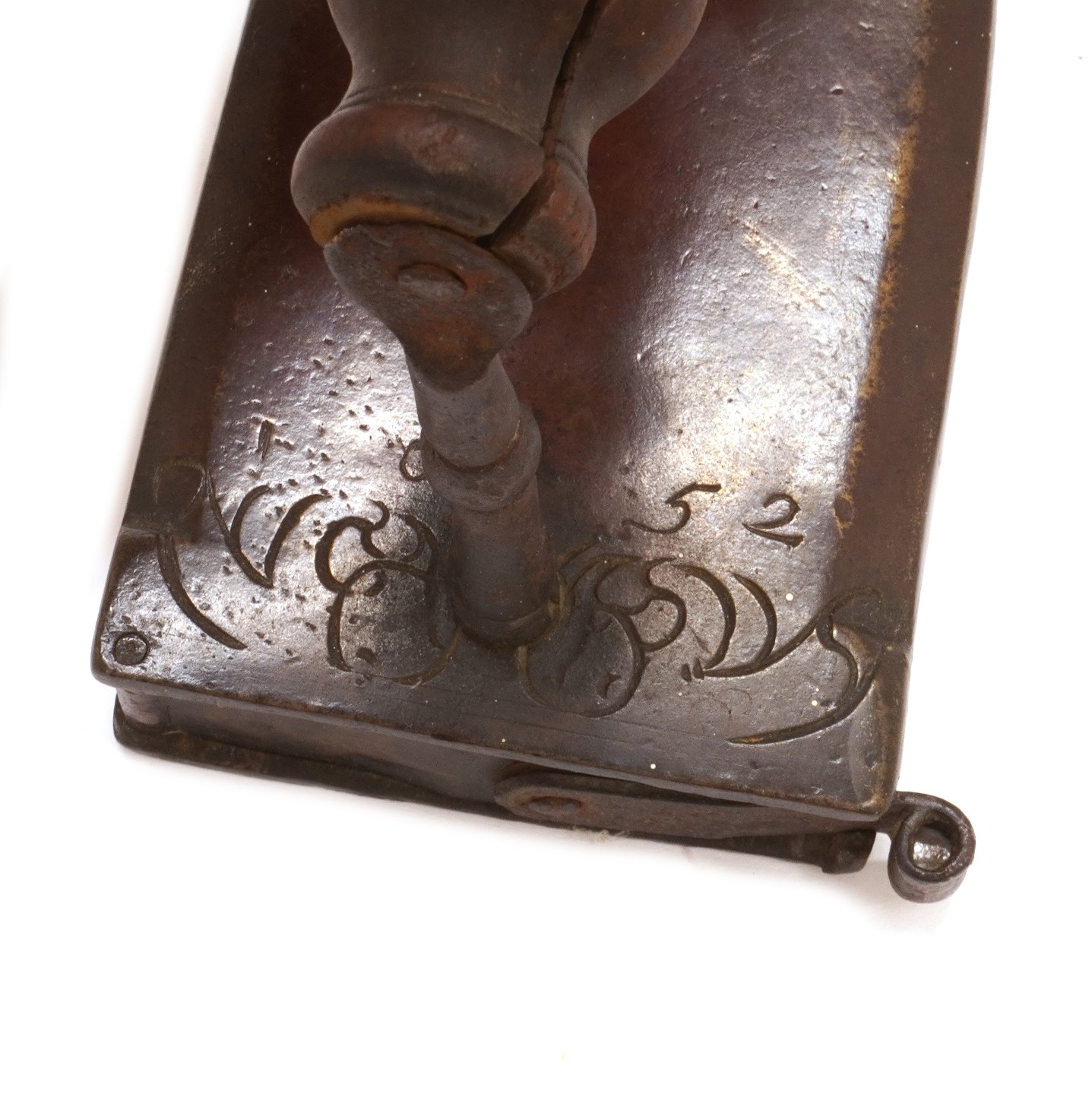 Tidlige patineret barokt butsnude strygejern dateret 1652
