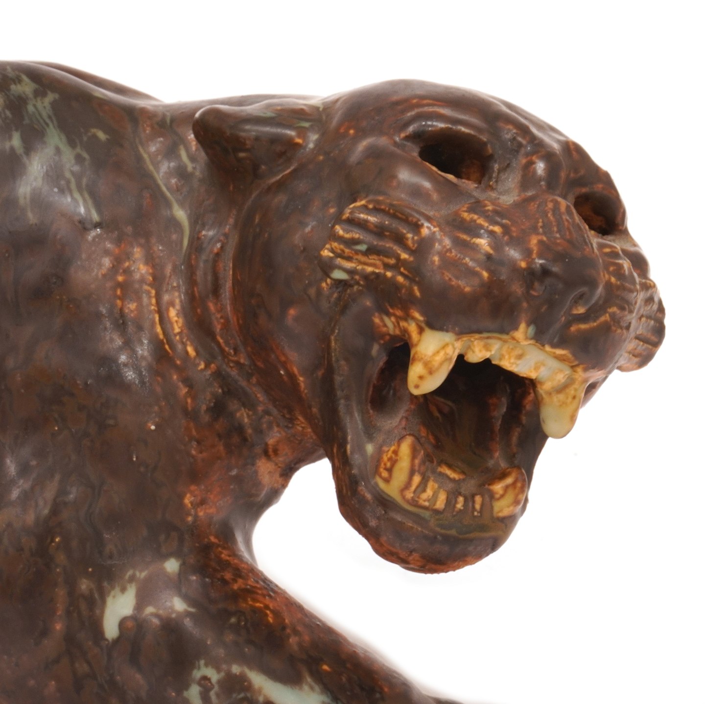 Stor unika panter i stentøj af Knud Kyhn. Signeret og dateret 1935. L: 45cm. H: 21cm