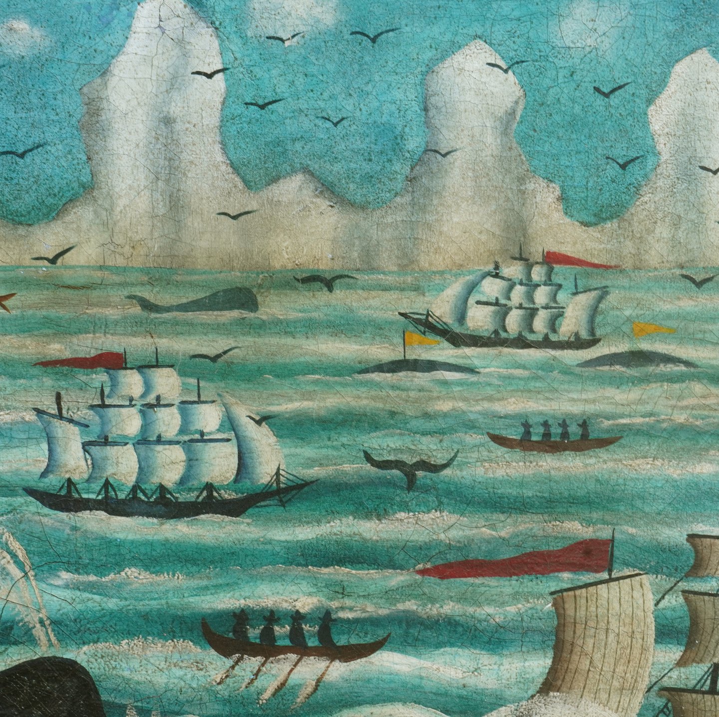 Seascape with whalers at Greenlands coast. Oil on canvas