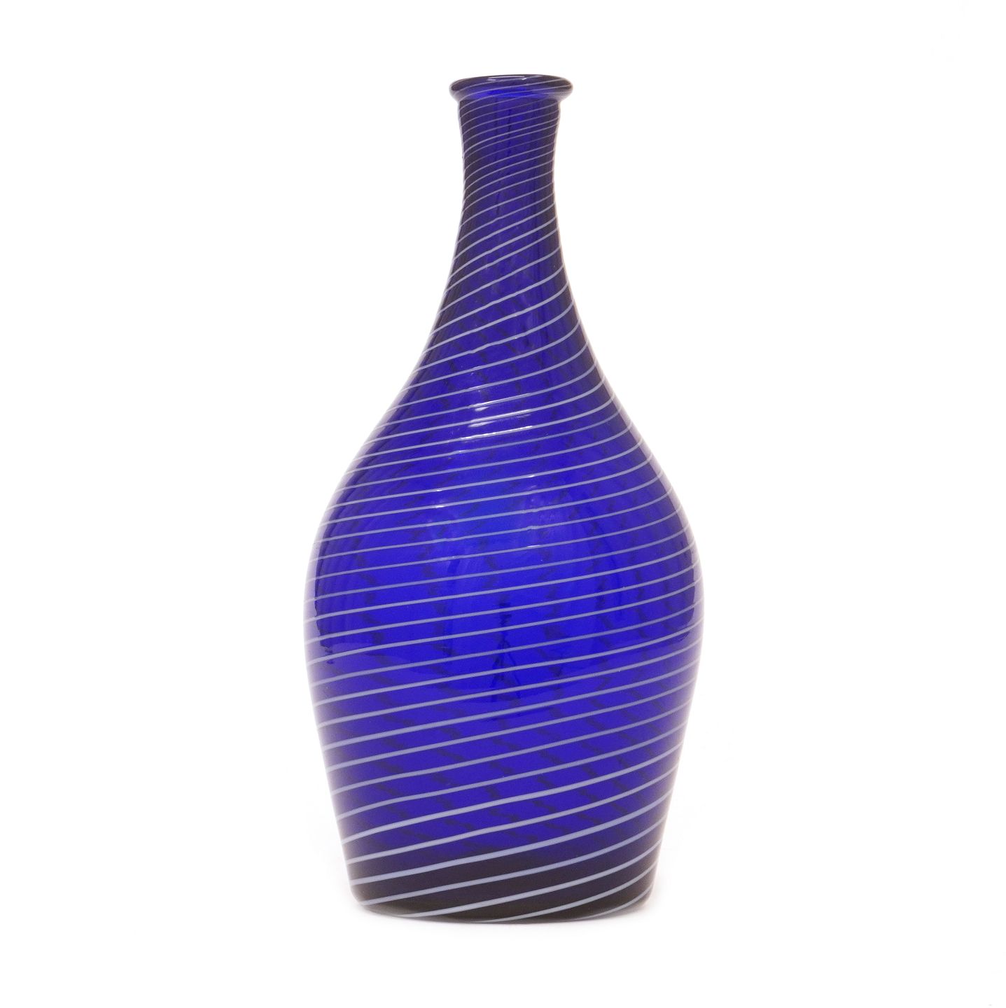 Norwegian cobolt coloured glass carafe with off white twist. Gjøvig Glasværk, Norway, circa 1810-20. H: 24cm