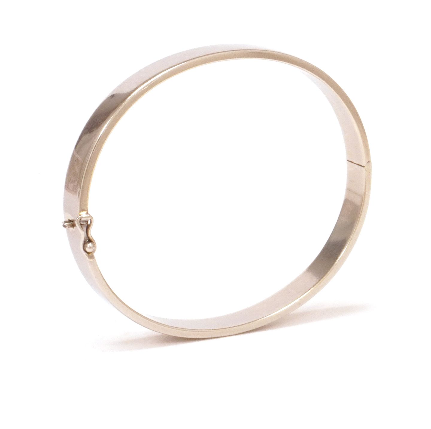 14kt hvidguld armring med kasse- og sikkerhedslås stemplet Skrivers Guldvarefabrik, Randers, ca. år 1980