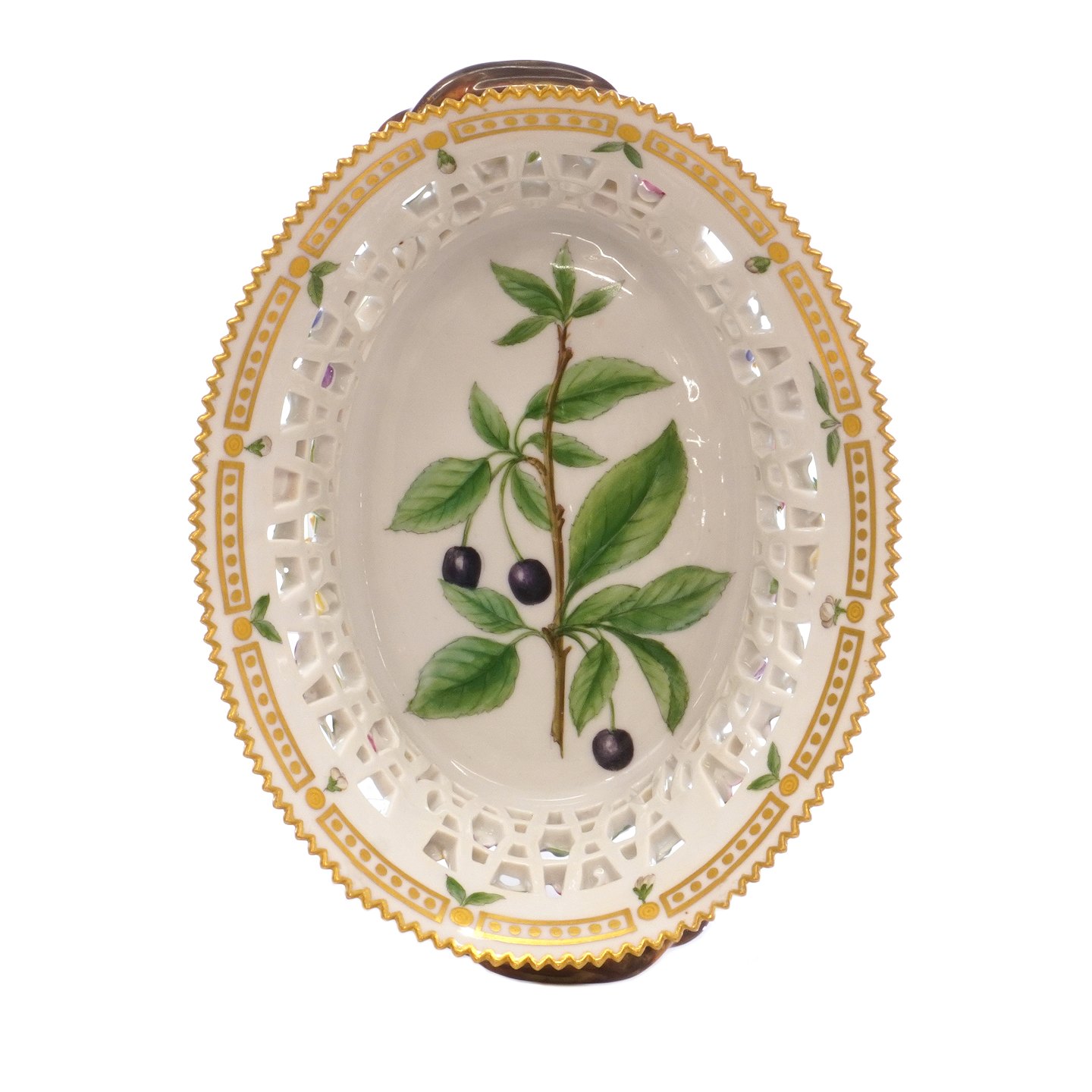 Flora Danica frugtkurv. Royal Copenhagen Flora Danica frugtkurv #3526. "Cerasus avrum L.". H: 8,5cm. L: 26cm