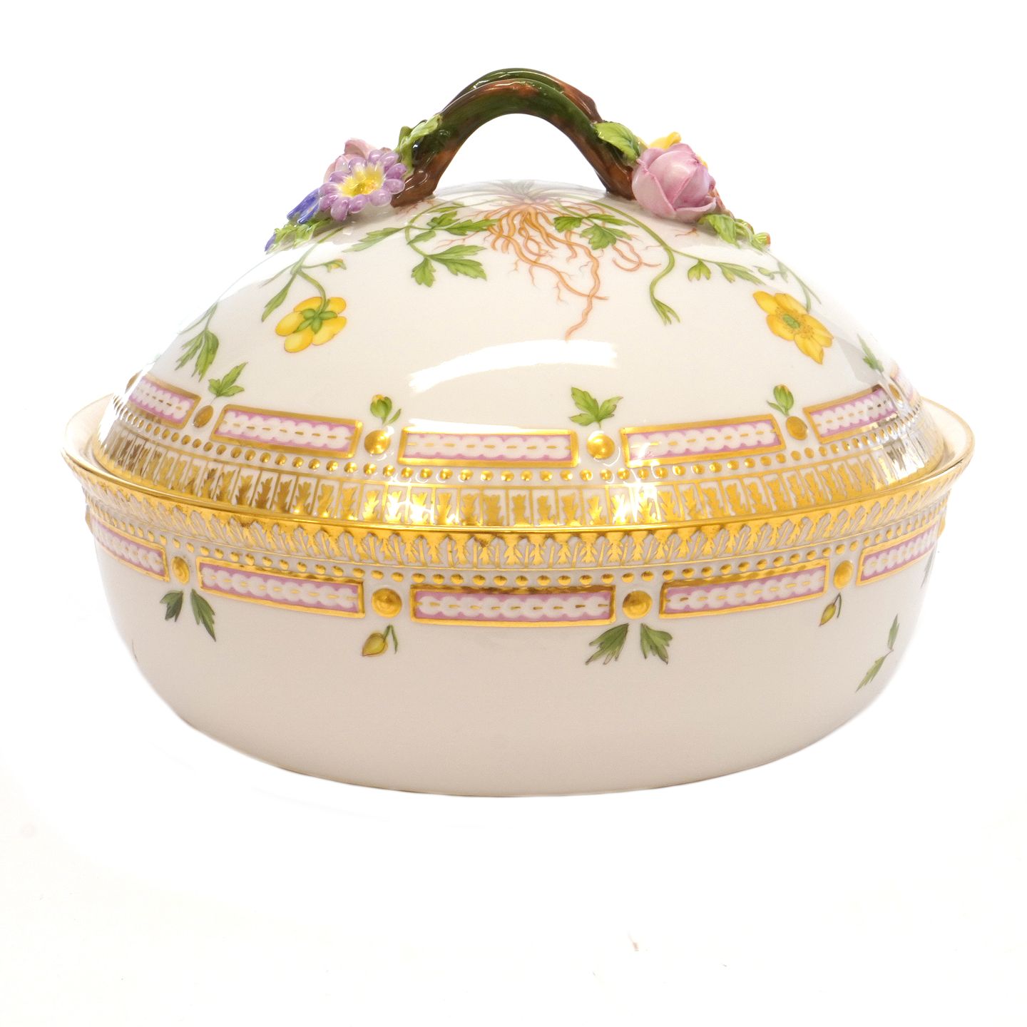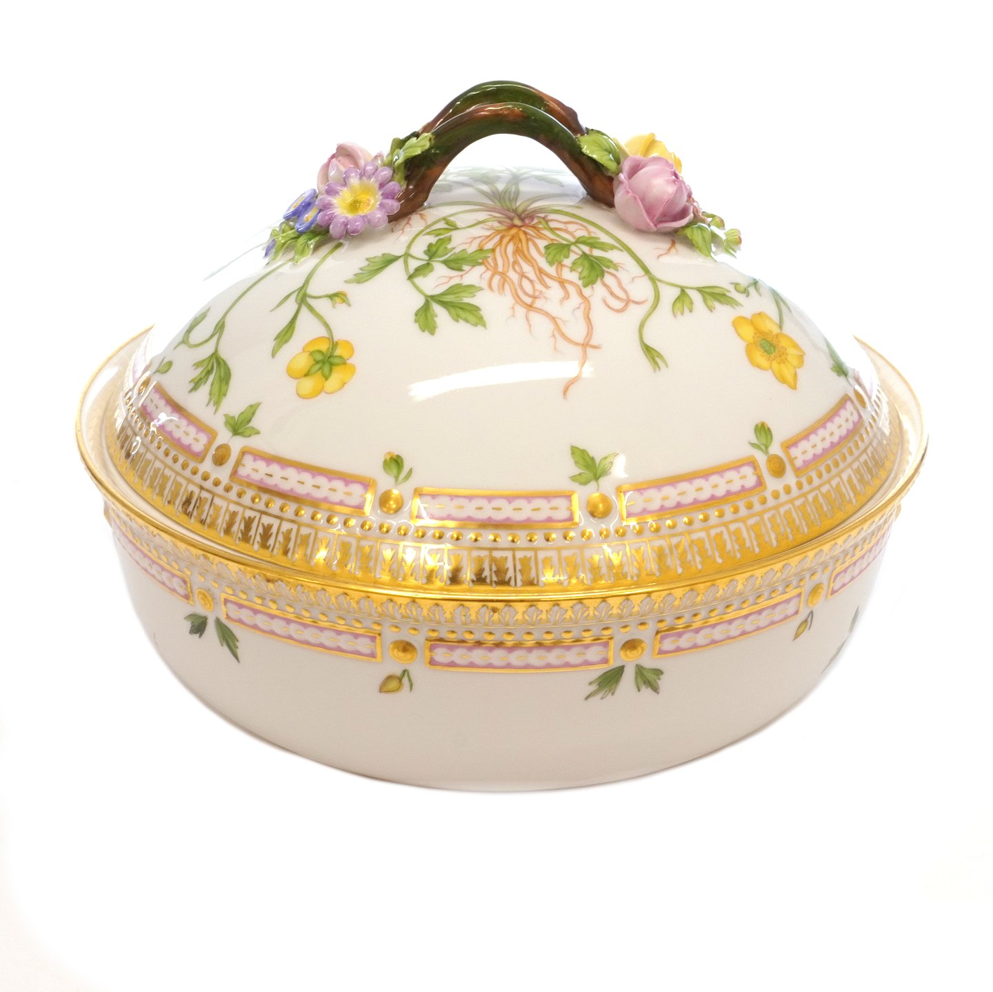 Royal Copenhagen Flora Danica tureen #3568. "Ranuncutus repens L." Year 1961-62. H: 17cm. D: 23,5cm