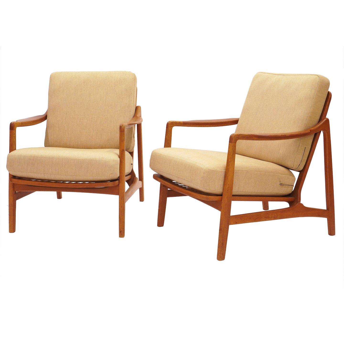 Tove & Edvard Kindt Larsen møbelsæt med sofa og to armstole fremstillet af France and Daverkosen med stel i eg og teak. Design Tove & Edvard Kindt Larsen