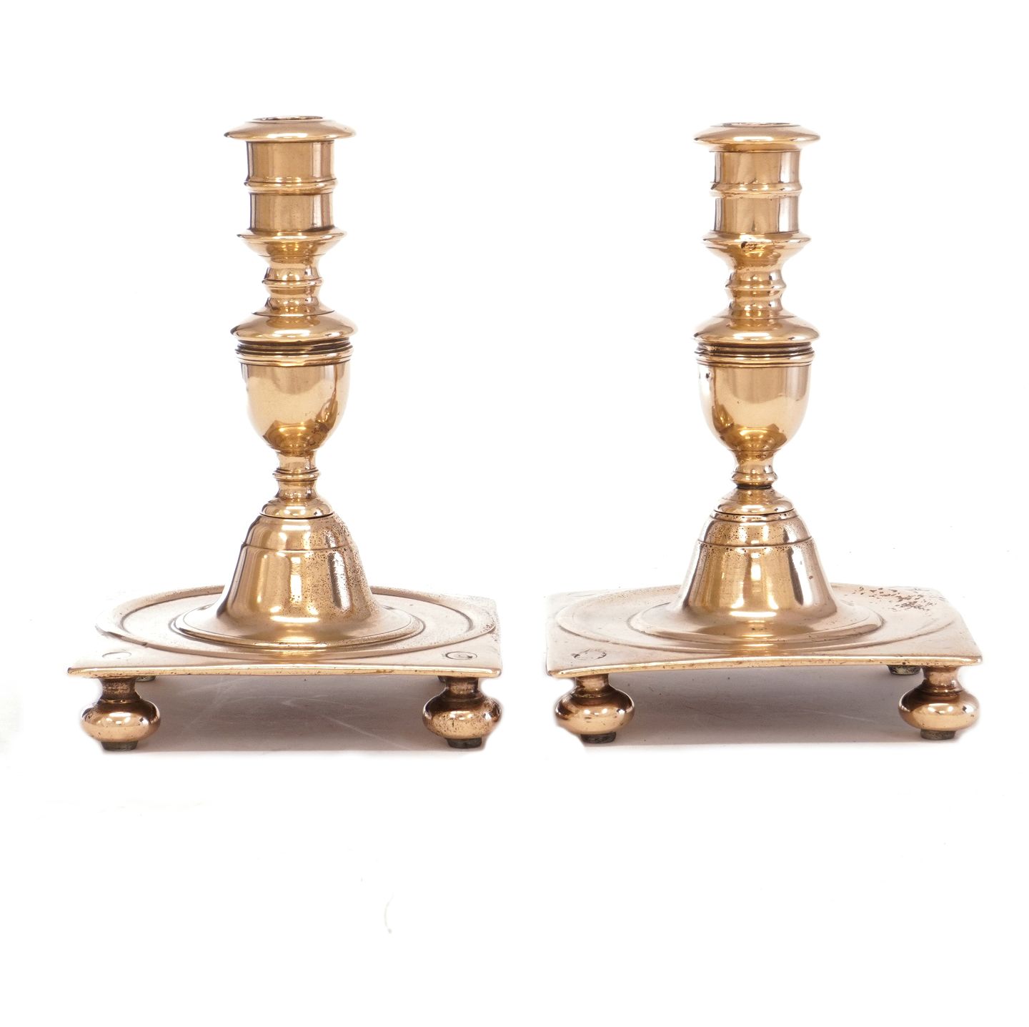 Et par barokke slotsstager udført i Messing. Danmark ca. år 1750. H: 22cm
