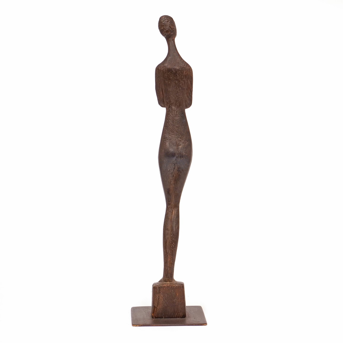 Otto P.-figur. Otto Pedersen, 1905-95, kvindefigur udført i træ