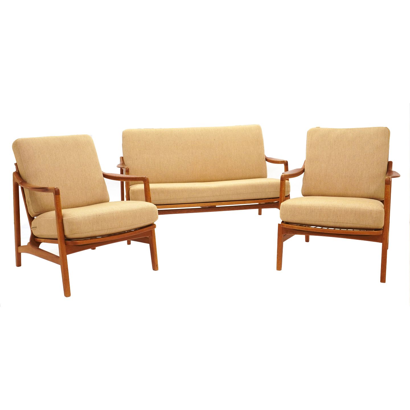 Set of sofa and two lounge chairs by Tove & Edvard Kindt Larsen manufactured by France and Daverkosen, oak and teak