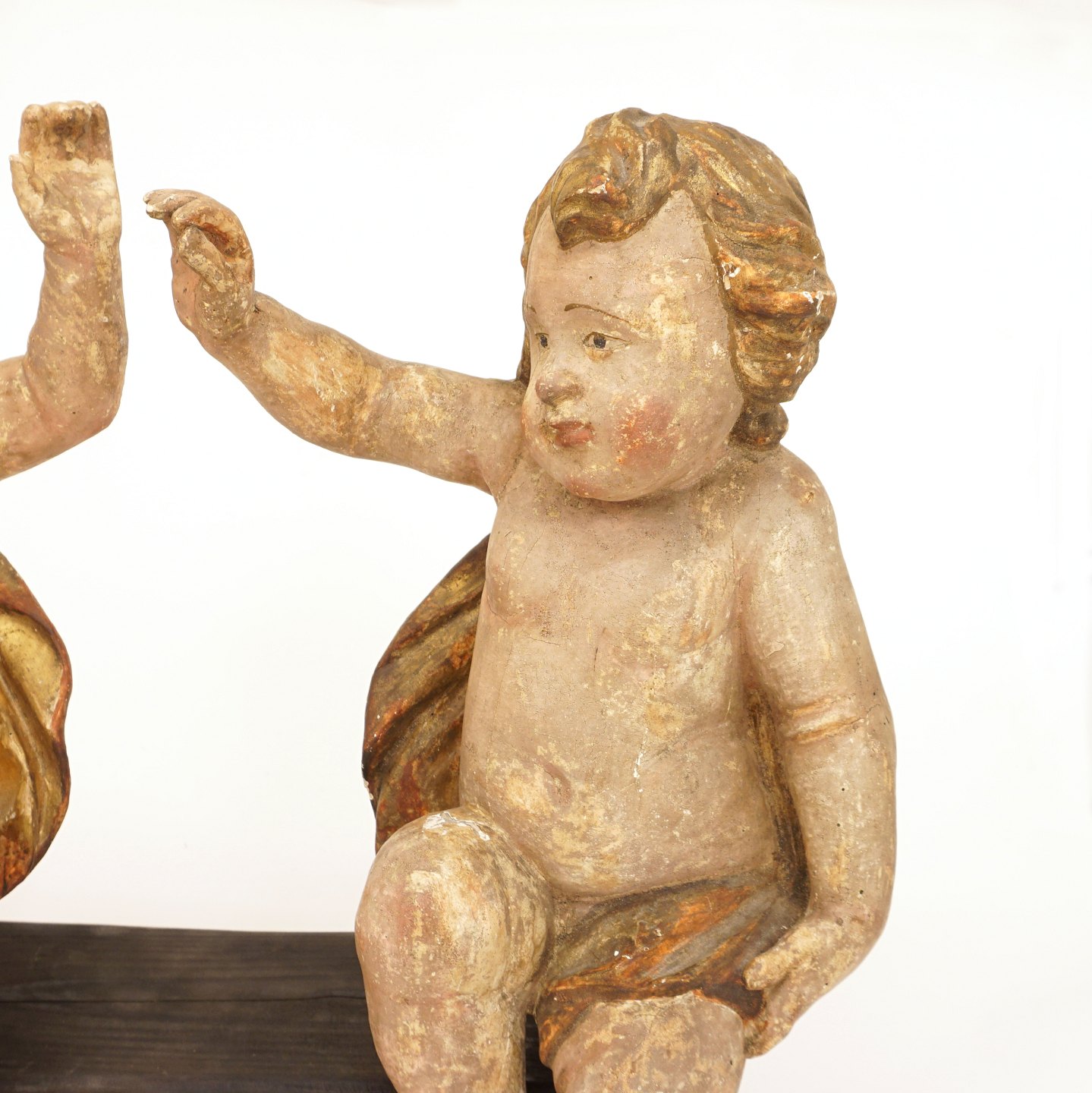 Et par barok engle skåret i træ. Sverige ca. år 1740. H: 55cm. B: 55cm