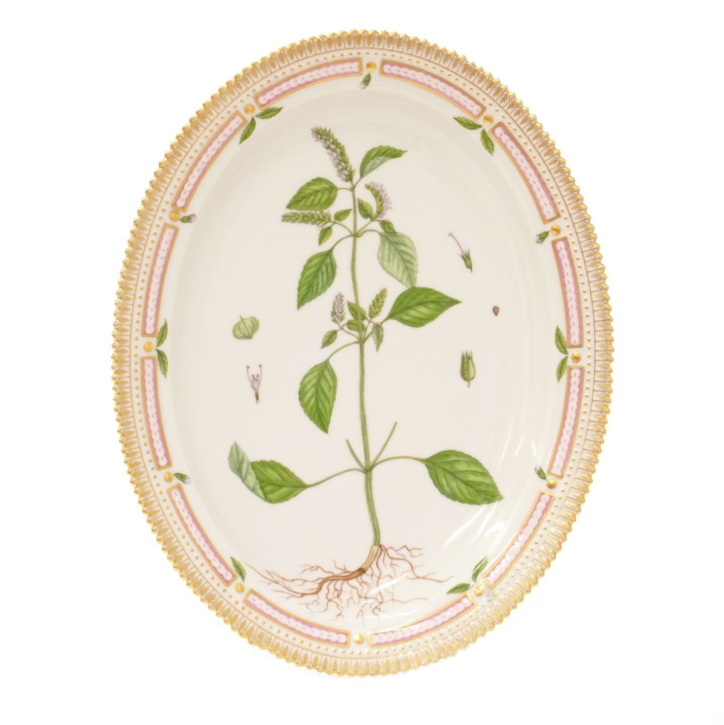 Royal Copenhagen Flora Danica ovalt serveringsfad 3517. L: 36cm. "Elsholtzia ceistata Willd."