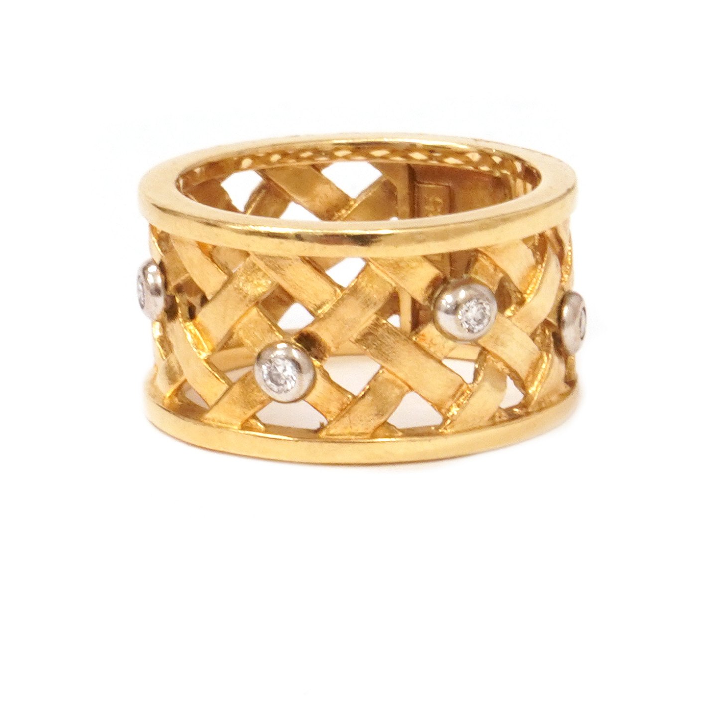 Ole Lynggaard fletring i 14kt guld prydet med 5 brillanter. Stemplet Ole L. Ringbredde: 11mm. Ringstr: 54