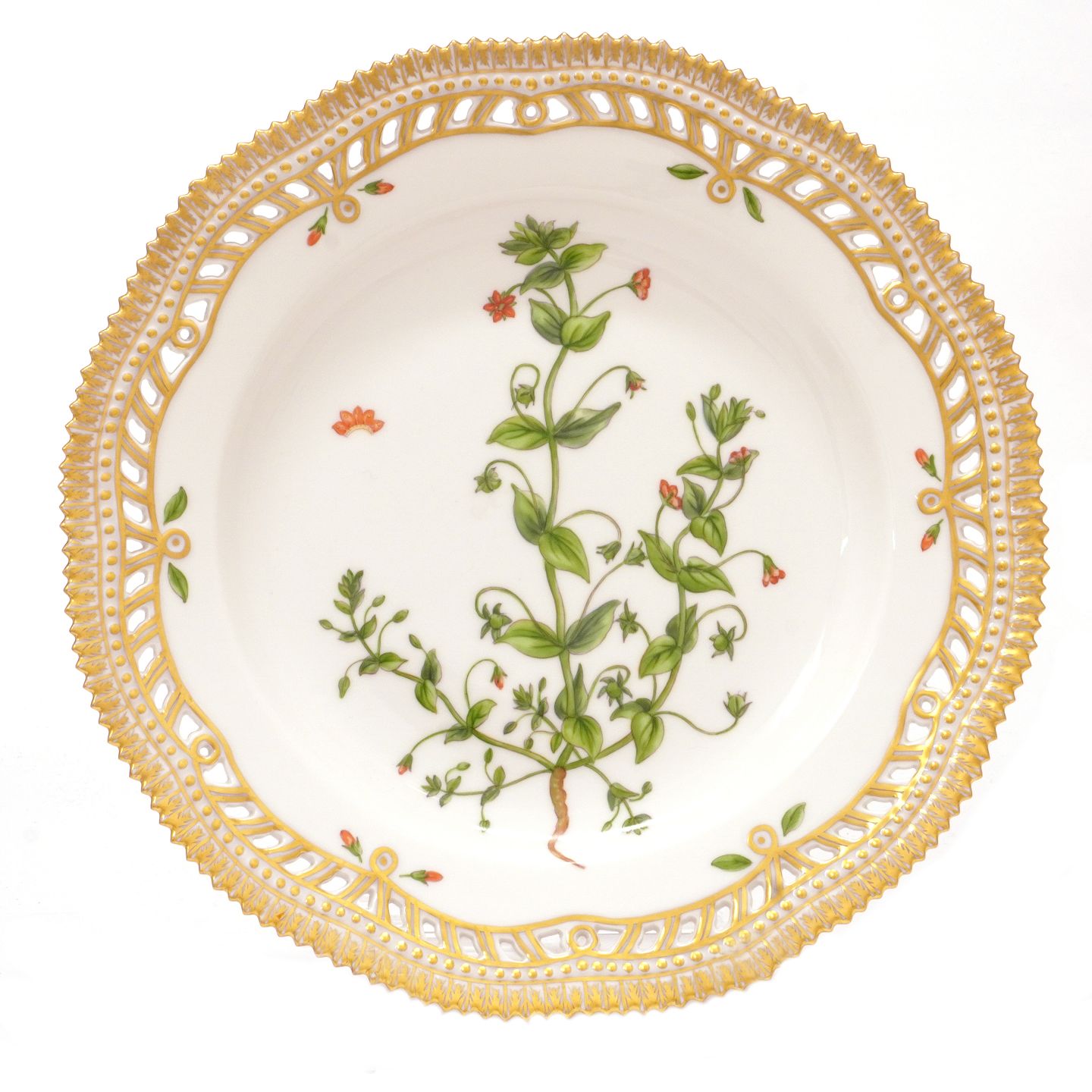 Royal Copenhagen Flora Danica middagstallerken med hvælvet og gennembrudt fane model 3553