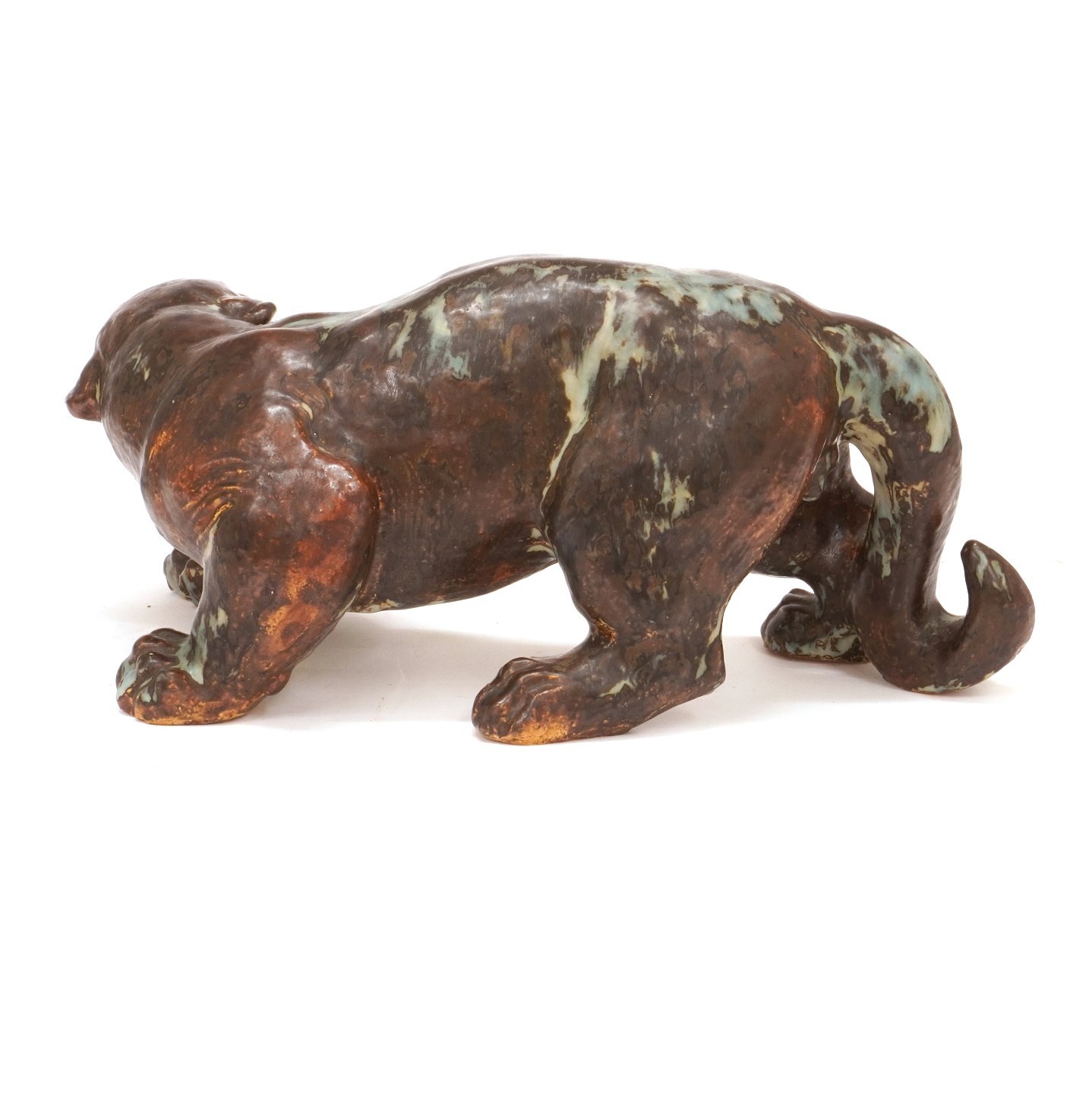 Stor unika panter i stentøj af Knud Kyhn. Signeret og dateret 1935. L: 45cm. H: 21cm