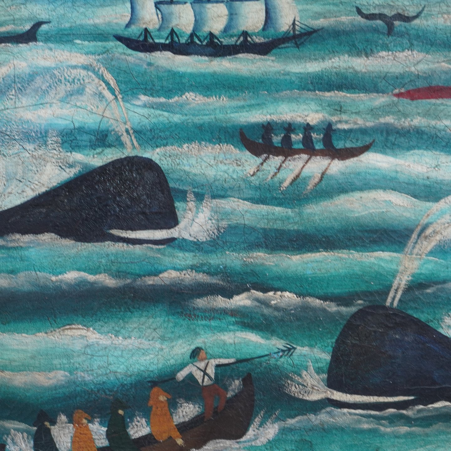 Parti med hvalfangere ud for Grønlands kyst, olie på lærred