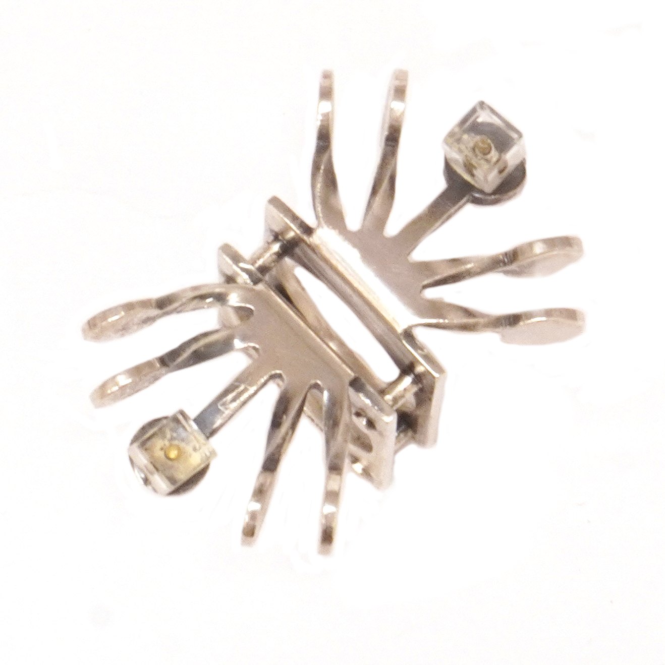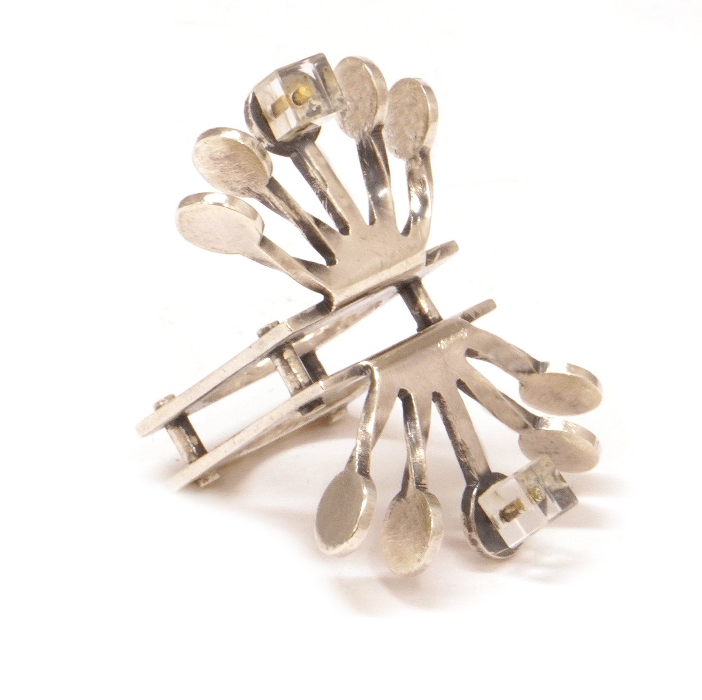 Bent Exner sterling sølv ring prydet med flammende arme og to plexiglas kvadrater