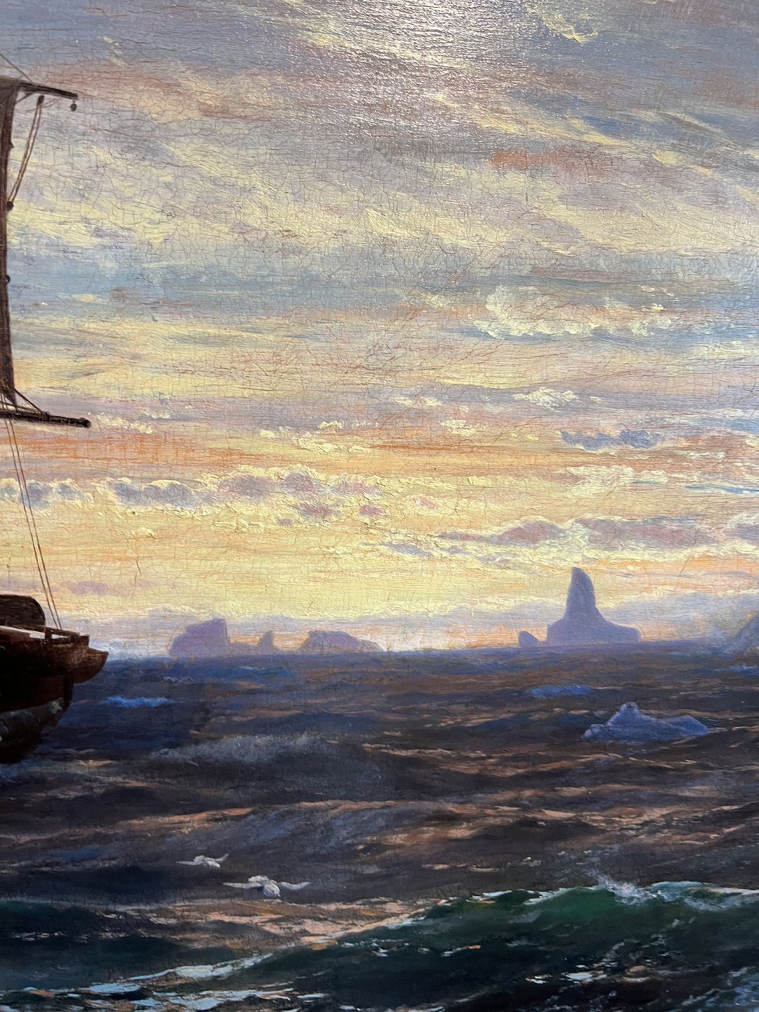 I E C Rasmussen parti fra Grønland med skib, isbjerge og solnedgang