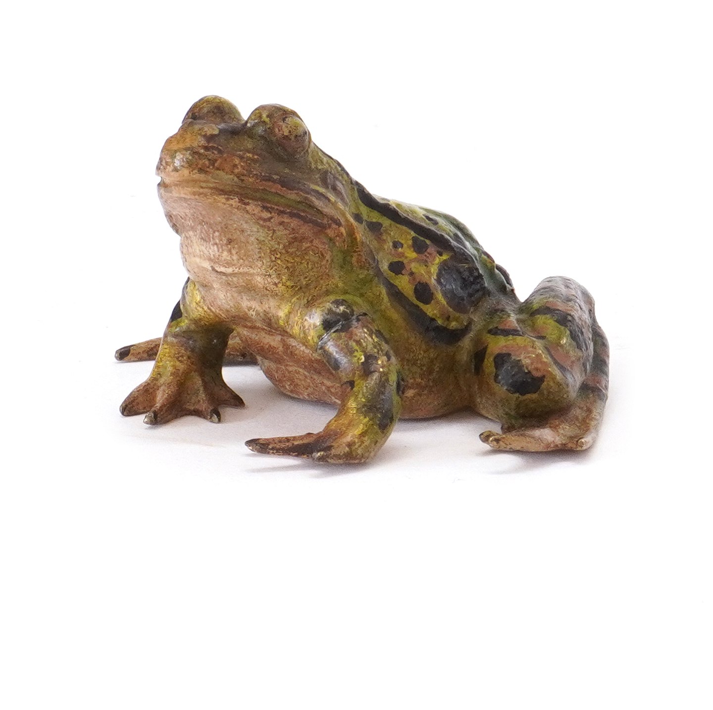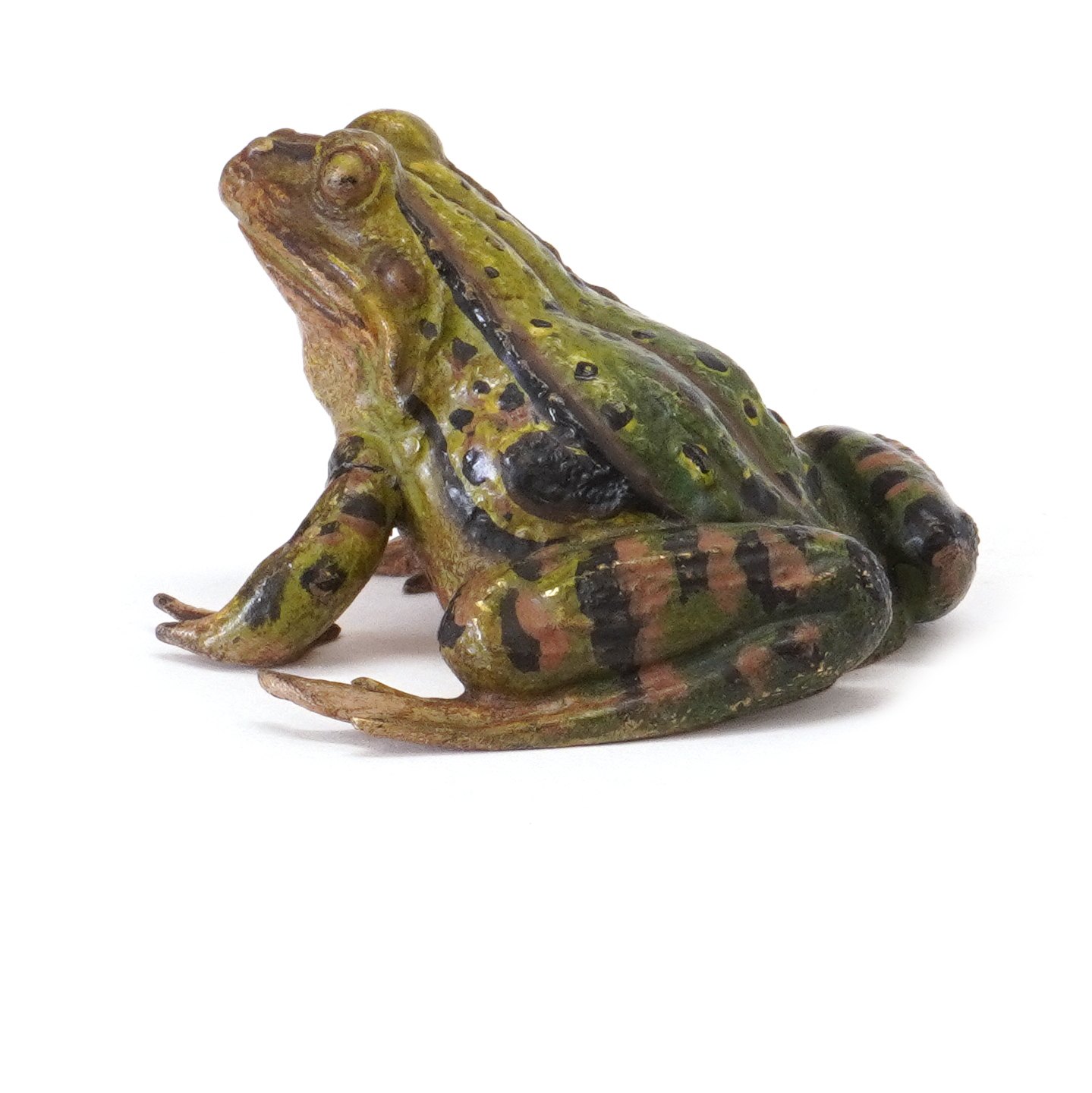 Polykrom dekoreret wiener bronze i form af en frø. H: 4cm. L: 6cm