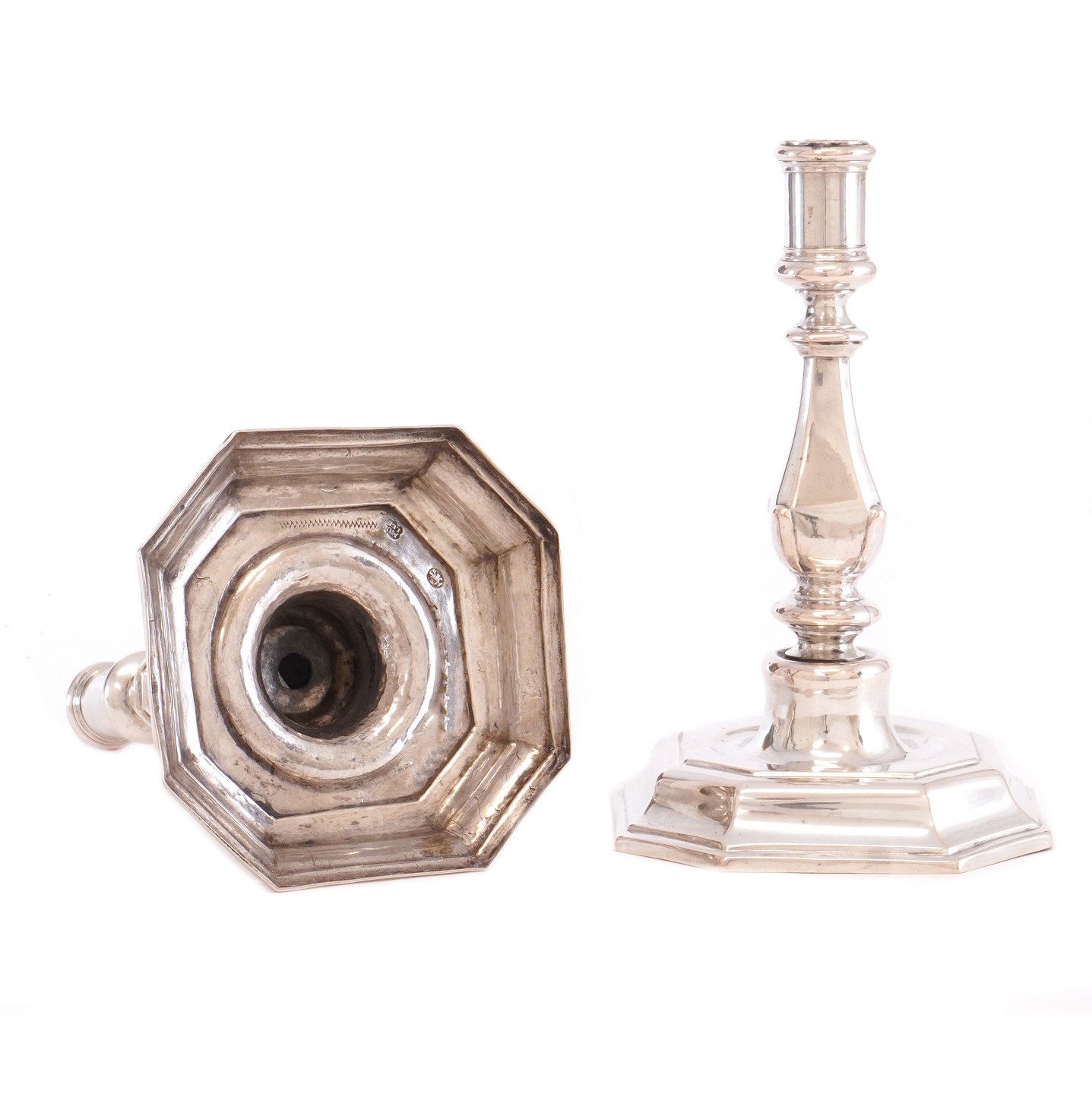 Pair of Baroque silver candlesticks ny Müller, Berlin, circa 1750