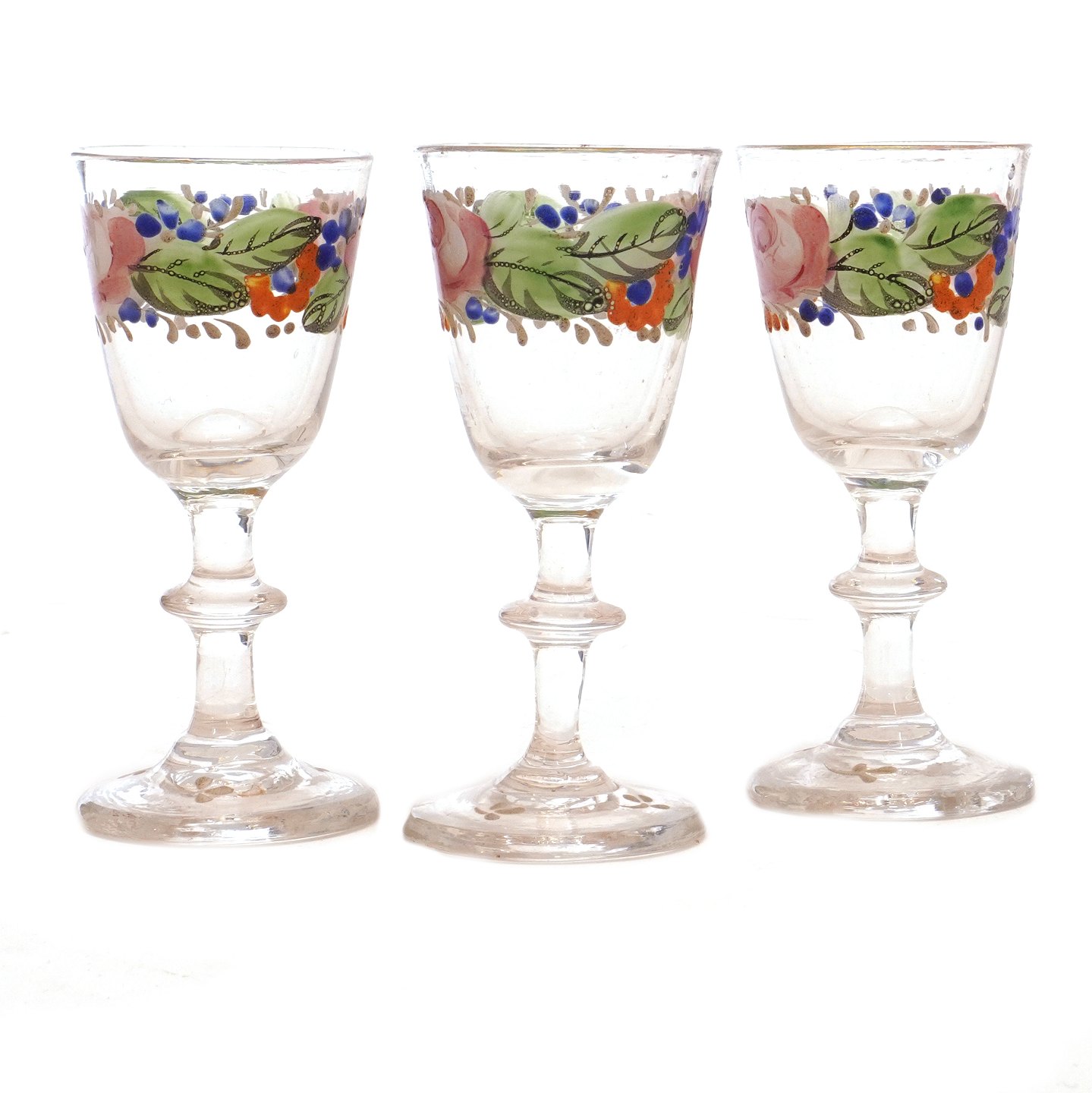 Sæt på tre emaljedekorerede glas
